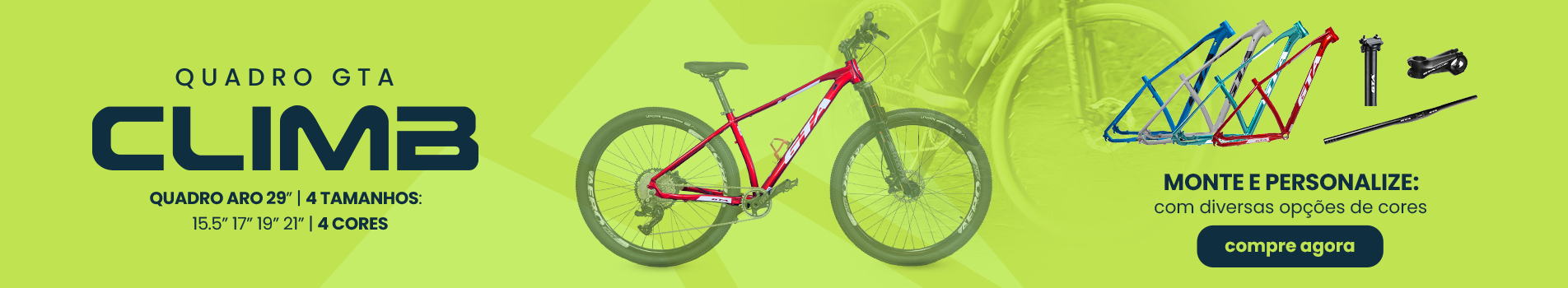] QUADRO 29 ALUMÍNIO GTA CLIMB TAM 19 VERDE POST MOUNT COM CABEAMENTO INTERNO SEM KIT