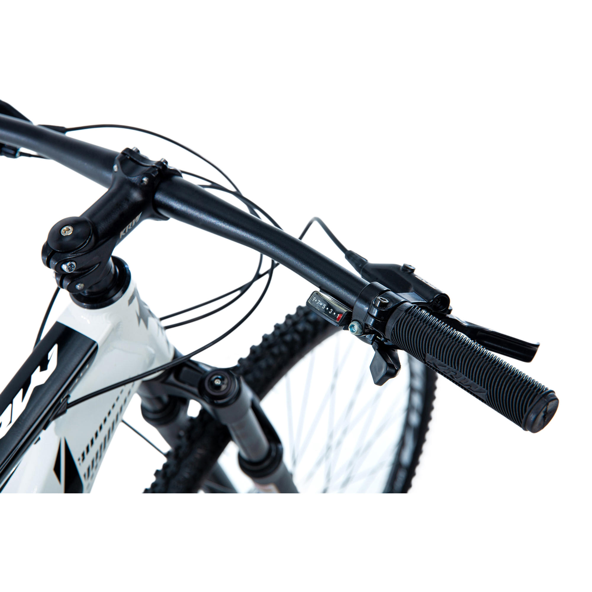 Bicicleta Aro 29 KRW Alumínio 24 Velocidades Freio à Disco W1 Branco/Preto 17" Quadro em alumínio 6061 Abraçadeira alumínio de selim 31,8mm Alavancas EZ-fire Aro aéro 29 parede dupla Caixa de direção semi-integrado Câmbio dianteiro importado Cambio traseiro importado Pedivela triplo preto Canote de selim 27.2mm com carrinho Corrente index Cubo rosca com blocagem Espaçador alumínio 10 mm Garfo suspensão mecânica Guidão alumínio 31.8mm Kit cabo com conduiter Mesa alumínio 31.8mm Movimento central rolamentado 122mm Pedal nylon Pinça de freio a disco com rotor de 160mm Pneu 29 Raio 285x2.0mm aço preto Roda livre 8 velocidades index Selim mtb