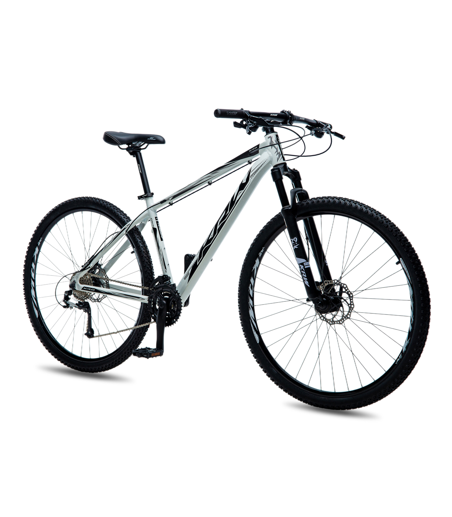 Bicicleta Aro 29 KRW Alumínio 24 Velocidades Freio à Disco W1 Branco/Preto 21" Quadro em alumínio 6061 Abraçadeira alumínio de selim 31,8mm Alavancas EZ-fire Aro aéro 29 parede dupla Caixa de direção semi-integrado Câmbio dianteiro importado Cambio traseiro importado Pedivela triplo preto Canote de selim 27.2mm com carrinho Corrente index Cubo rosca com blocagem Espaçador alumínio 10 mm Garfo suspensão mecânica Guidão alumínio 31.8mm Kit cabo com conduiter Mesa alumínio 31.8mm Movimento central rolamentado 122mm Pedal nylon Pinça de freio a disco com rotor de 160mm Pneu 29 Raio 285x2.0mm aço preto Roda livre 8 velocidades index Selim mtb