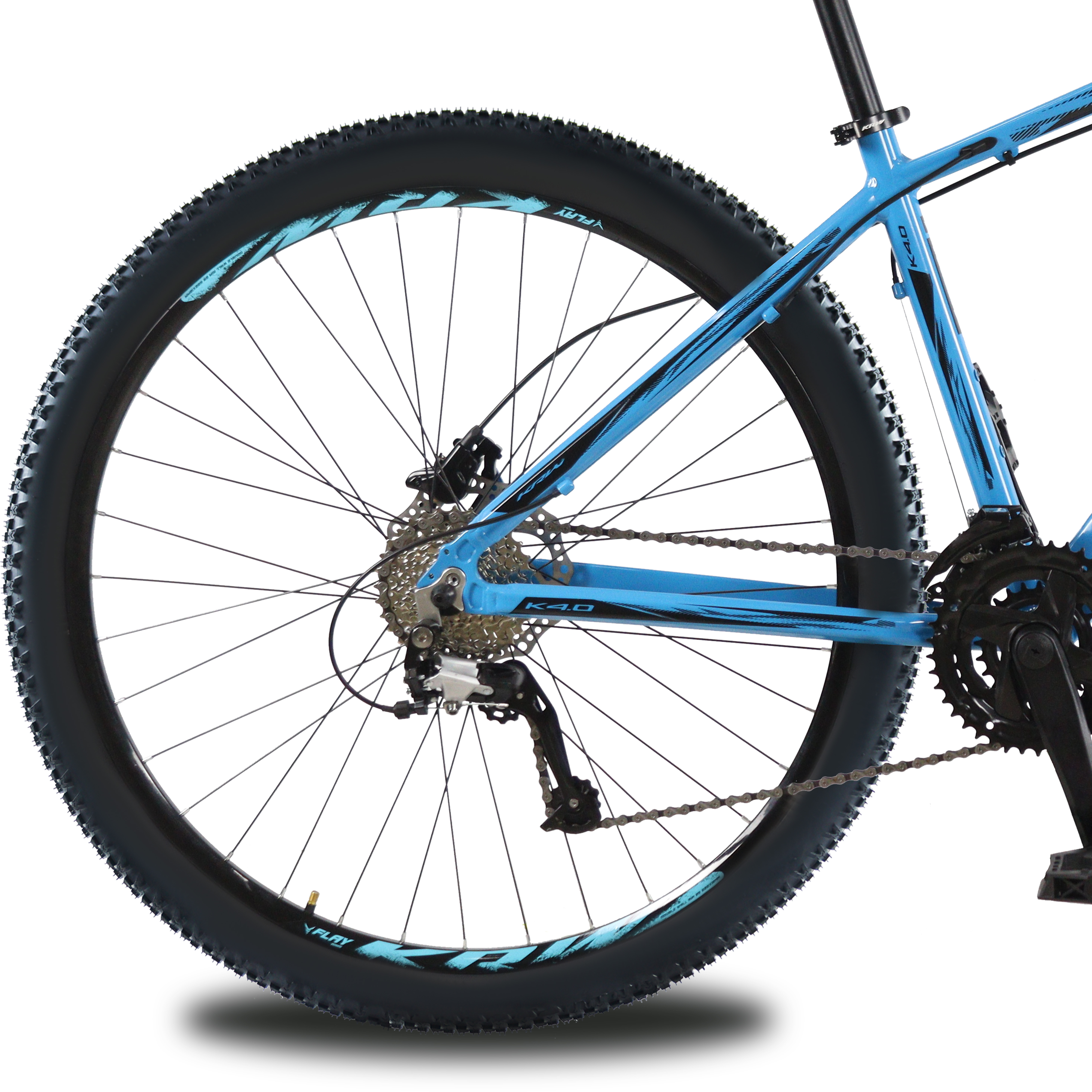 Bicicleta Aro 29 KRW Alumínio 27v Freio Hidráulico Cassete W4 Azul/Preto 15.5" Quadro em alumínio 6061 Freio Hidráulico Abraçadeira alumínio de selim 31,8mm com blocagem Alavancas de câmbio rapid-fire 9 velocidades Aro aéro 29 parede dupla 36f Caixa de direção semi-integrado Câmbio dianteiro Importado Câmbio traseiro Importado Câmera de ar 29 Pedivela coroa triplo alumínio Canote de selim 27.2mm com carrinho Corrente index 9 velocidades Cubo alumínio cassete com blocágem Espaçador alumínio 10mm Garfo suspensão mecânica Guidão alumínio 31.8mm reto Mesa alumínio 31.8 mm Kit cabo com conduiter com teflonn Movimento central rolamentado 122mm Pedal plataforma com refletor Pneu 29 Raio 285x2.0mm aço preto Cassete 9 velocidades index Selim mtb