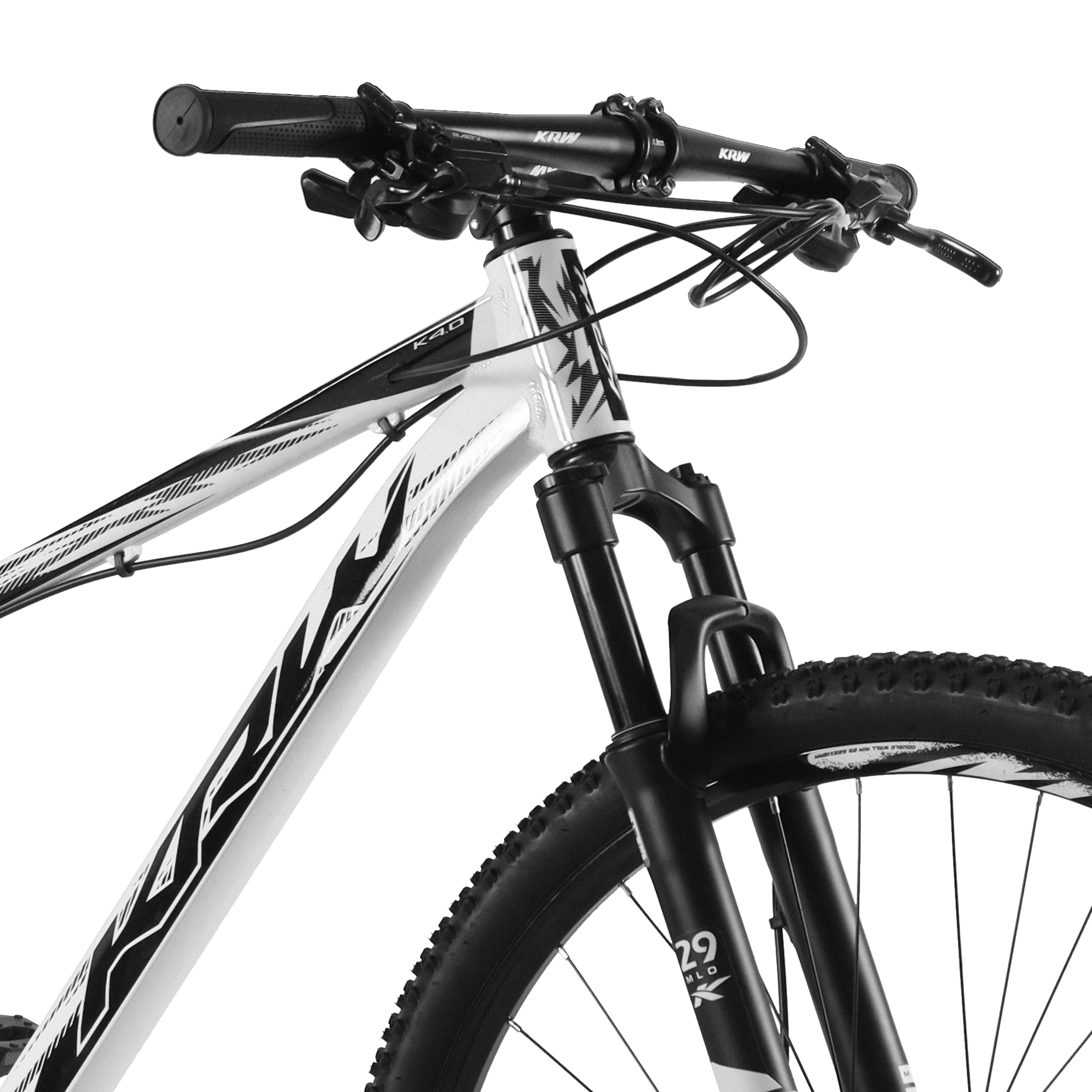 Bicicleta Aro 29 KRW Alumínio 27v Freio Hidráulico com Trava de Ombro Cassete W6 Branco/Preto 21" Quadro em alumínio 6061 Abraçadeira alumínio de selim 31,8mm Alavancas de câmbio ez-fire 9 velocidades Aro aéro 29 pared dupla 36f Caixa de direção semi integrado Câmbio dianteiro Importado Câmbio traseiro Importado Pedivela aço coroa triplo revestido Canote de selim 27.2mm com carrinho Corrente index 9 velocidades Cubo com blocágem Espaçador alumínio 10 mm Garfo suspensão mecânico Guidão alumínio 31.8mm reto Kit cabo com conduiter com teflonn Mesa alumínio 31.8mm Movimento central rolamentado 122mm Pedal em nylon preto Pinça de freio a disco com rotor de 160mm Pneu 29 cravos Raio 285x2.0mm aço preto Roda livre de 9 index Selim mtb