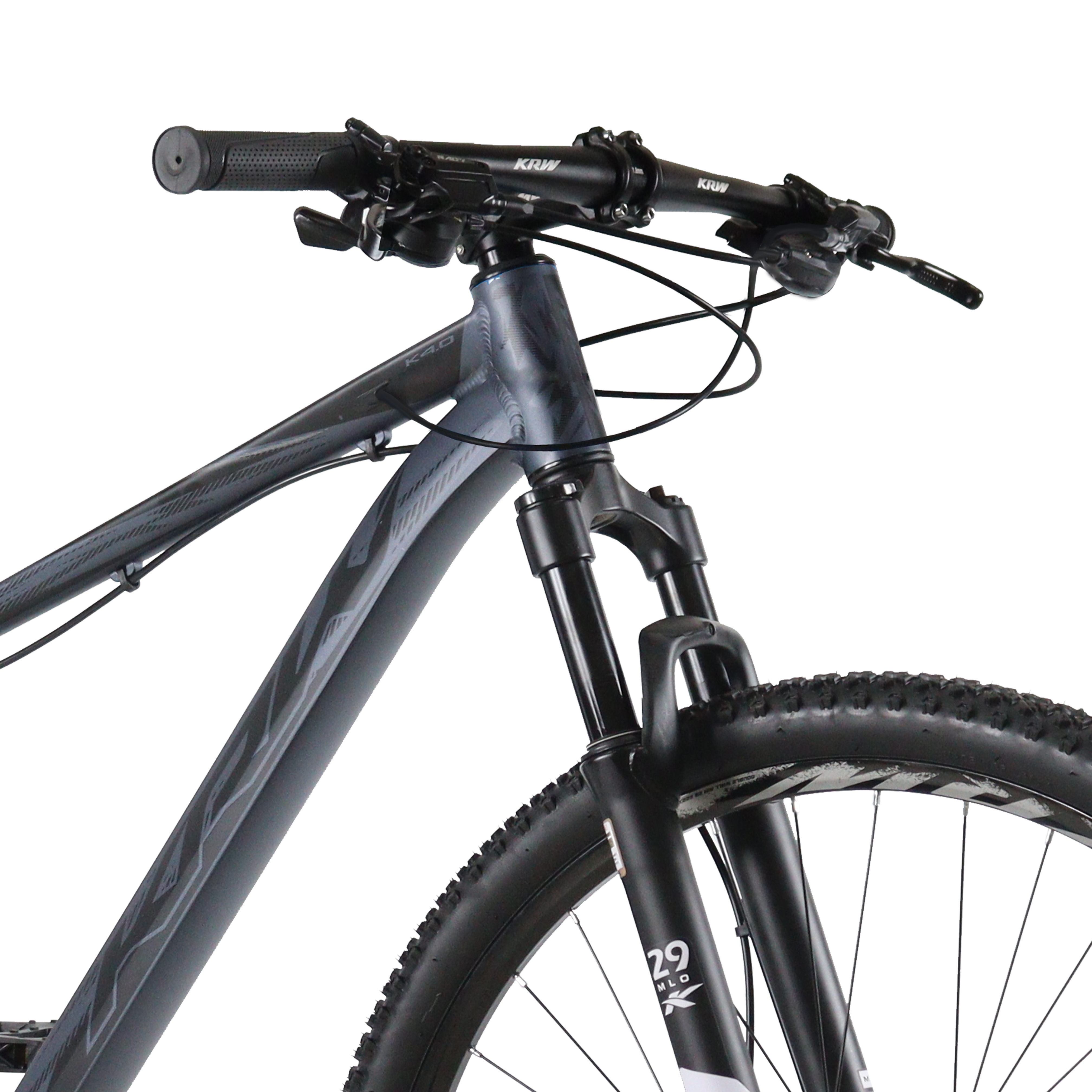 Bicicleta Aro 29 KRW Alumínio 27v Freio Hidráulico com Trava de Ombro Cassete W6 Grafite/Preto 21" Quadro em alumínio 6061 Abraçadeira alumínio de selim 31,8mm Alavancas de câmbio ez-fire 9 velocidades Aro aéro 29 pared dupla 36f Caixa de direção semi integrado Câmbio dianteiro Importado Câmbio traseiro Importado Pedivela aço coroa triplo revestido Canote de selim 27.2mm com carrinho Corrente index 9 velocidades Cubo com blocágem Espaçador alumínio 10 mm Garfo suspensão mecânico Guidão alumínio 31.8mm reto Kit cabo com conduiter com teflonn Mesa alumínio 31.8mm Movimento central rolamentado 122mm Pedal em nylon preto Pinça de freio a disco com rotor de 160mm Pneu 29 cravos Raio 285x2.0mm aço preto Roda livre de 9 index Selim mtb