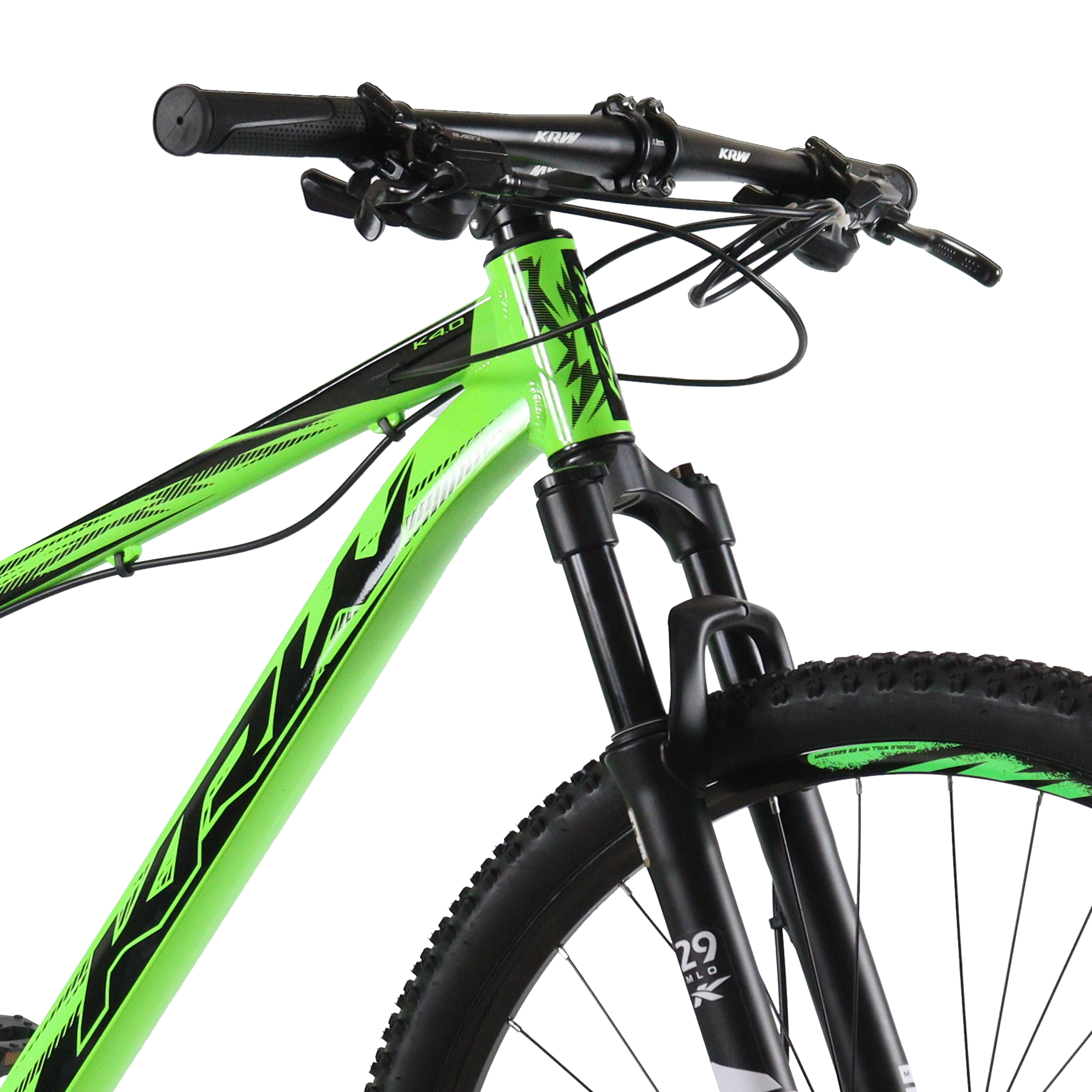 Bicicleta Aro 29 KRW Alumínio 27v Freio Hidráulico com Trava de Ombro Cassete W6 Verde/Preto 15.5" Quadro em alumínio 6061 Abraçadeira alumínio de selim 31,8mm Alavancas de câmbio ez-fire 9 velocidades Aro aéro 29 pared dupla 36f Caixa de direção semi integrado Câmbio dianteiro Importado Câmbio traseiro Importado Pedivela aço coroa triplo revestido Canote de selim 27.2mm com carrinho Corrente index 9 velocidades Cubo com blocágem Espaçador alumínio 10 mm Garfo suspensão mecânico Guidão alumínio 31.8mm reto Kit cabo com conduiter com teflonn Mesa alumínio 31.8mm Movimento central rolamentado 122mm Pedal em nylon preto Pinça de freio a disco com rotor de 160mm Pneu 29 cravos Raio 285x2.0mm aço preto Roda livre de 9 index Selim mtb