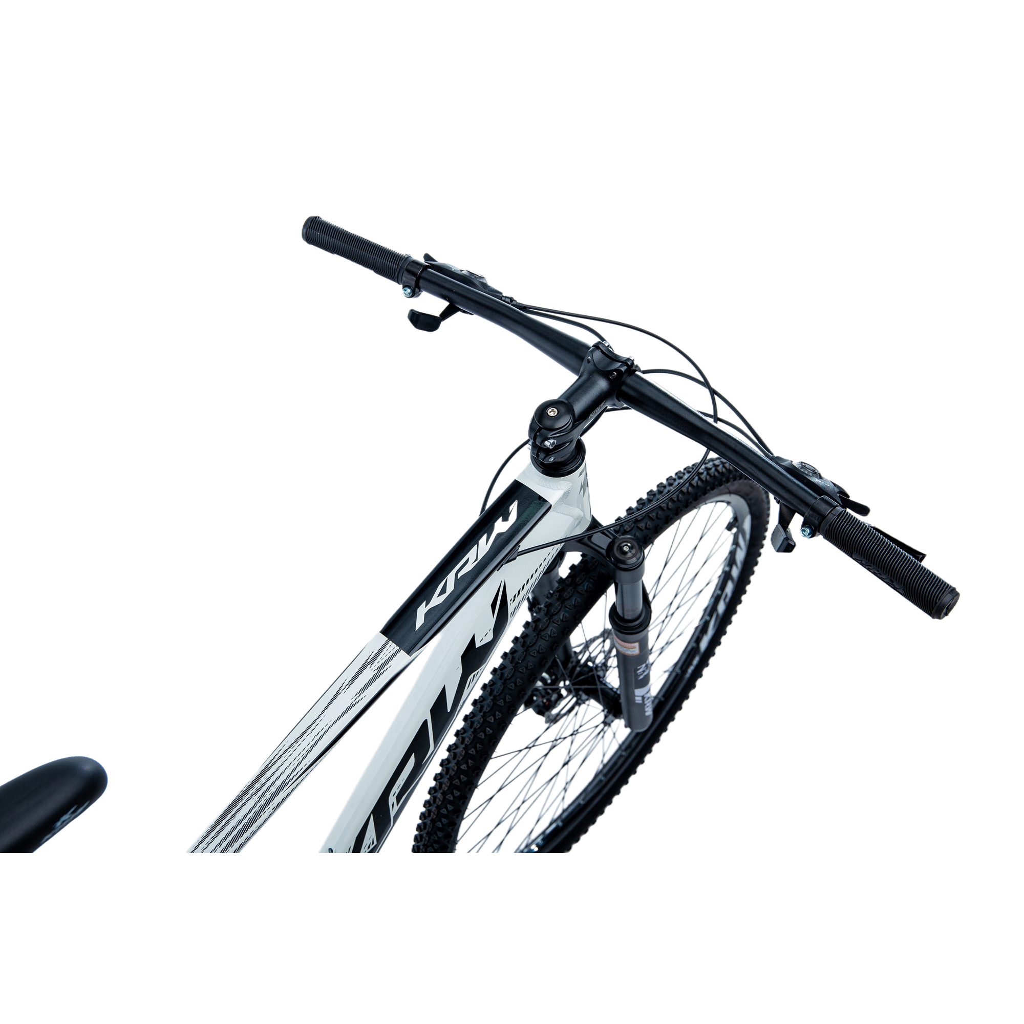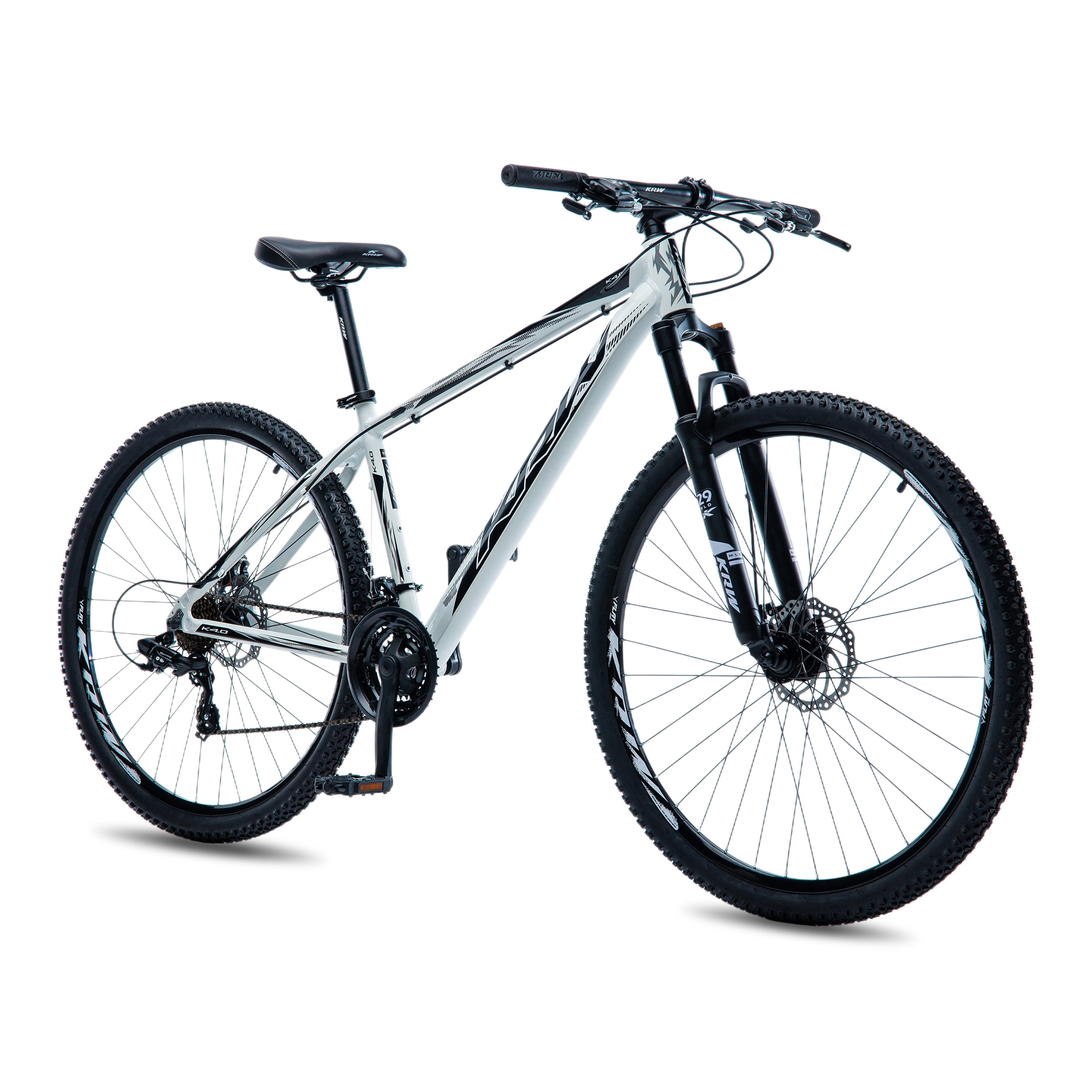 Bicicleta Aro 29 KRW Alumínio Shimano TZ 24v Freio a Disco W9 Branco/Preto 17" Quadro em alumínio 6061 Abraçadeira alumínio de selim 31,8mm Alavancas de câmbio ez-fire 8 velocidades Aro aéro 29 pared dupla 36f Caixa de direção semi integrado Câmbio dianteiro Shimano TZ Câmbio traseiro Shimano TZ Pedivela coroa triplo revestido Canote de selim 27.2mm com carrinho Corrente index Cubo com blocágem Espaçador alumínio 10mm Garfo suspensão mecânico Guidão alumínio 31.8mm Kit cabo com conduiter com teflonn Mesa alumínio 31.8mm Movimento central rolamentado 122mm Pedal em nylon preto Pinça de freio a disco com rotor de 160mm Pneu 29 cravos Raio 285x2.0mm aço preto Roda livre de 8 index Selim mtb