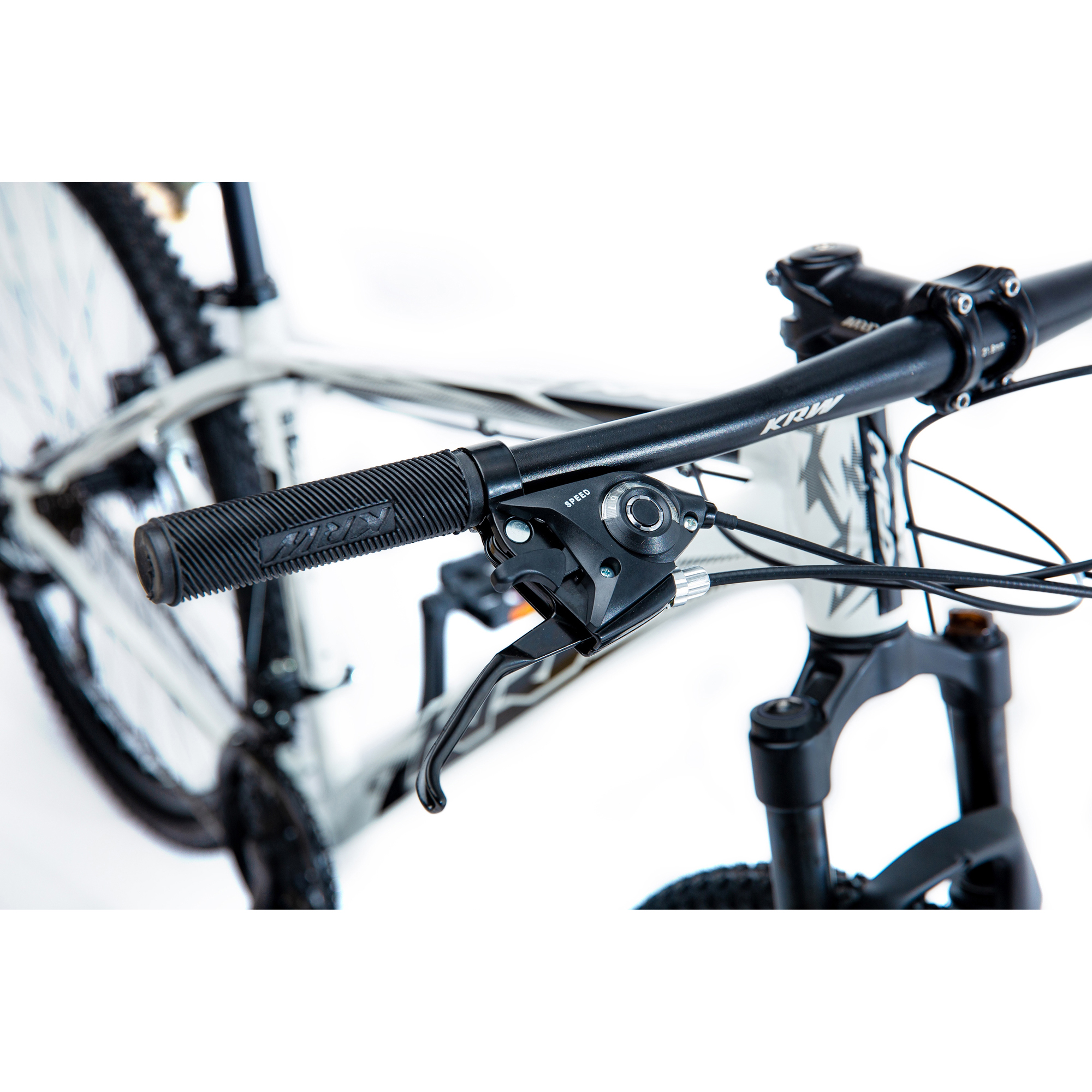 Bicicleta Aro 29 KRW Alumínio Shimano TZ 24v Freio a Disco W9 Branco/Preto 21" Quadro em alumínio 6061 Abraçadeira alumínio de selim 31,8mm Alavancas de câmbio ez-fire 8 velocidades Aro aéro 29 pared dupla 36f Caixa de direção semi integrado Câmbio dianteiro Shimano TZ Câmbio traseiro Shimano TZ Pedivela coroa triplo revestido Canote de selim 27.2mm com carrinho Corrente index Cubo com blocágem Espaçador alumínio 10mm Garfo suspensão mecânico Guidão alumínio 31.8mm Kit cabo com conduiter com teflonn Mesa alumínio 31.8mm Movimento central rolamentado 122mm Pedal em nylon preto Pinça de freio a disco com rotor de 160mm Pneu 29 cravos Raio 285x2.0mm aço preto Roda livre de 8 index Selim mtb