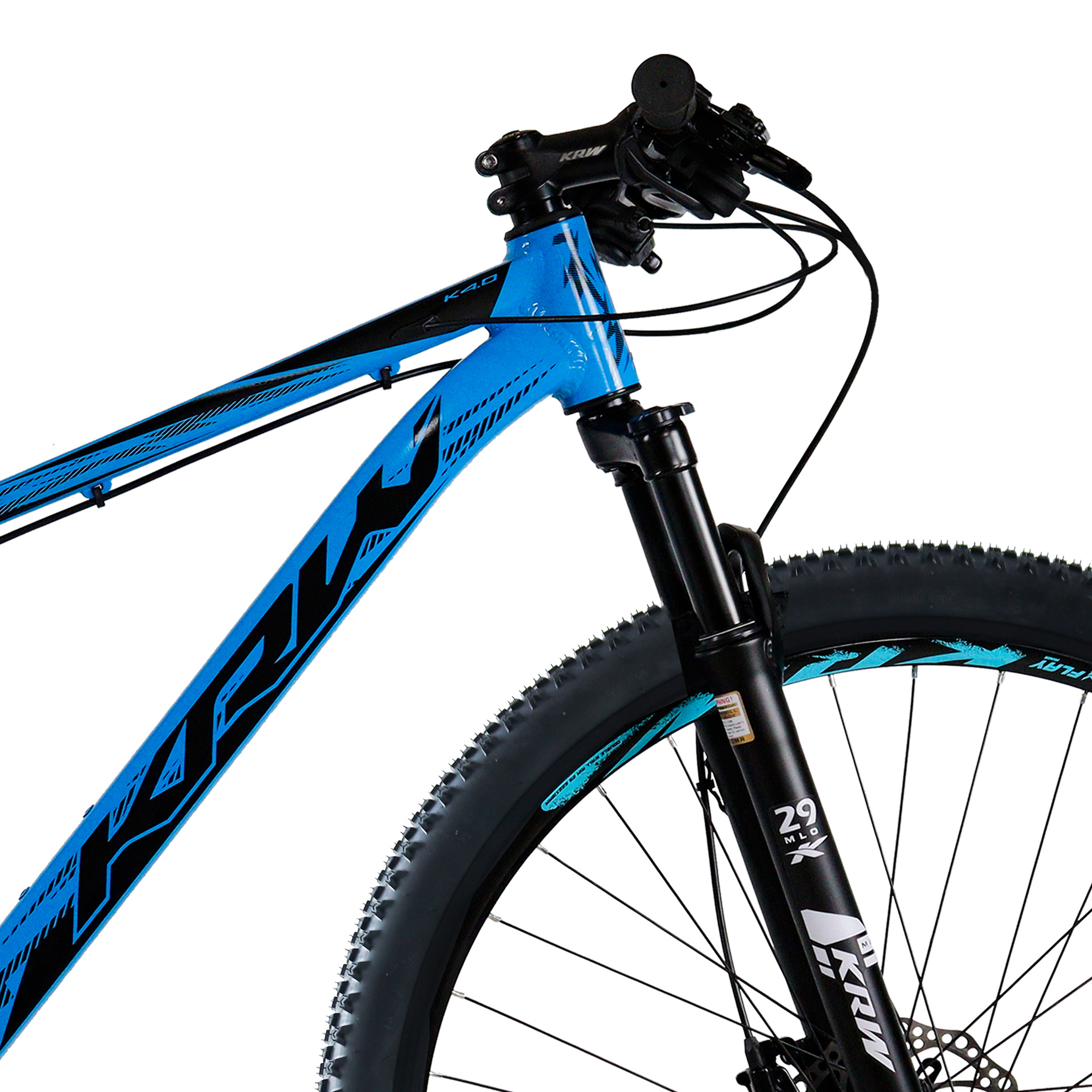 Bicicleta Aro 29 KRW Alumínio 24v Freio Hidráulico com Trava de Ombro Cassete W3 Azul/Preto 21" Quadro em alumínio 6061 Freio Hidráulico Abraçadeira alumínio de selim 31,8mm com blocagem Alavancas de câmbio rapid-fire 8 velocidades Aro aéro 29 parede dupla Caixa de direção semi-integrado Câmbio dianteiro Importado Câmbio traseiro Importado Câmera de ar 29 Pedivela coroa triplo alumínio Canote de selim 27.2mm com carrinho Corrente index 8 velocidades Cubo alumínio cassete com blocágem Espaçador alumínio 10 mm Garfo suspensão 29 com Trava Guidão alumínio 31.8 mm reto Mesa alumínio 31.8 mm Kit cabo com conduiter com teflonn Movimento central rolamentado 122mm Pedal plataforma com refletor Pneu 29 Raio 285x2.0mm aço preto Cassete 8 velocidades index Selim mtb