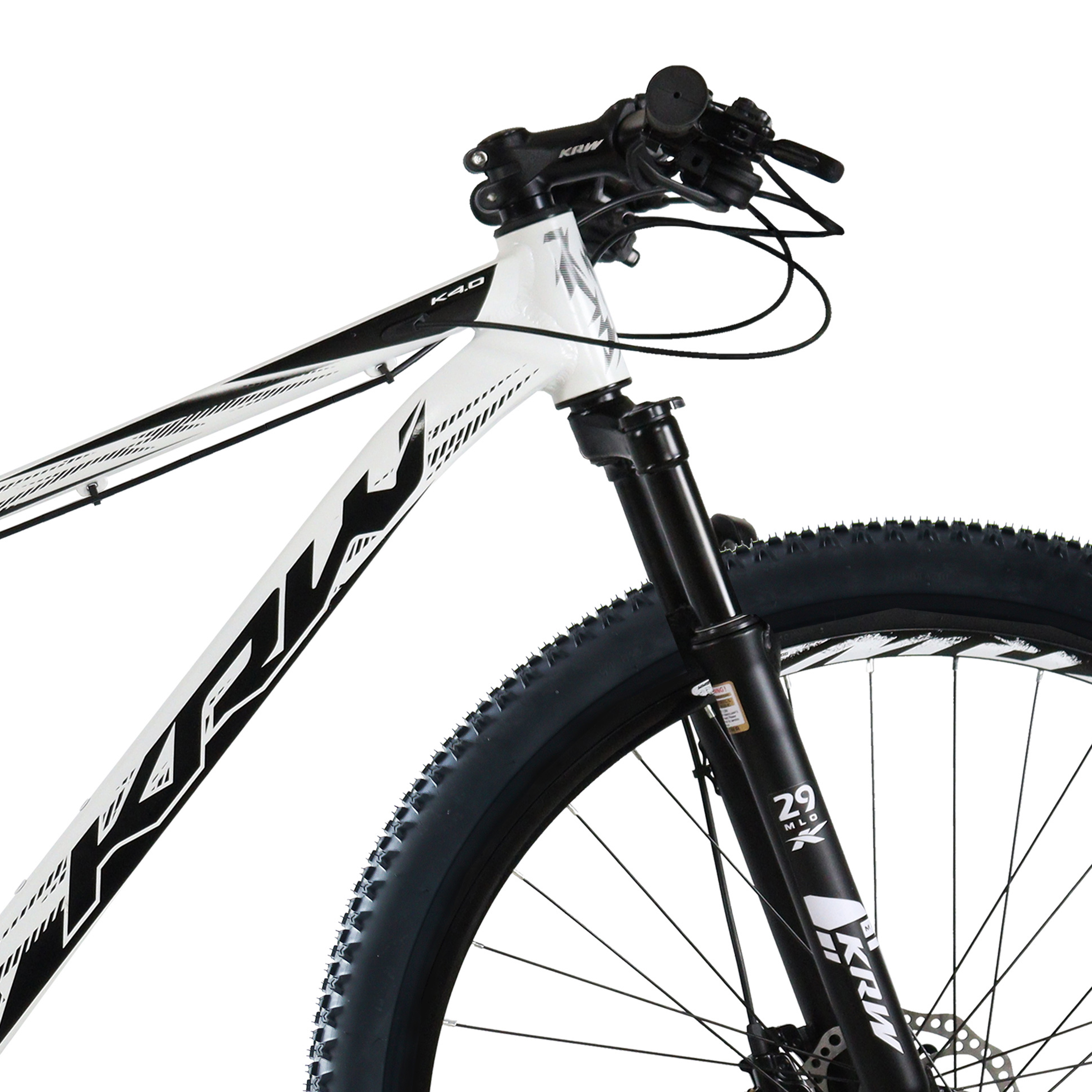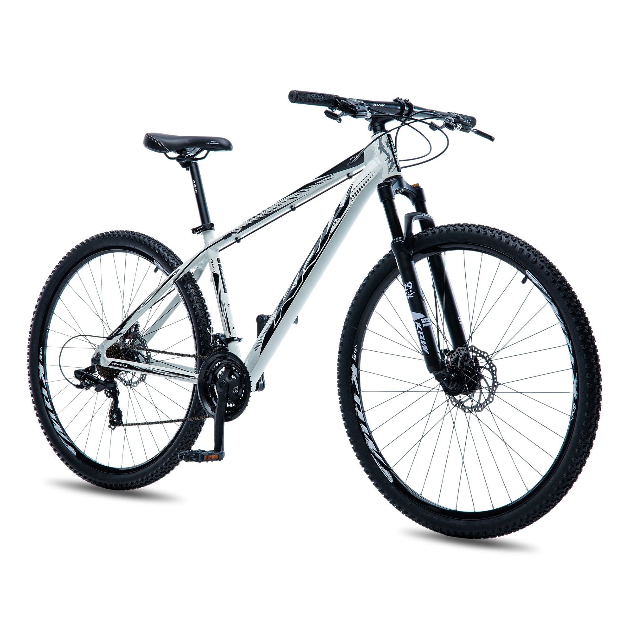 Bicicleta Aro 29 KRW Alumínio 24v Freio Hidráulico com Trava de Ombro Cassete W3 Branco/Preto 17" Quadro em alumínio 6061 Freio Hidráulico Abraçadeira alumínio de selim 31,8mm com blocagem Alavancas de câmbio rapid-fire 8 velocidades Aro aéro 29 parede dupla Caixa de direção semi-integrado Câmbio dianteiro Importado Câmbio traseiro Importado Câmera de ar 29 Pedivela coroa triplo alumínio Canote de selim 27.2mm com carrinho Corrente index 8 velocidades Cubo alumínio cassete com blocágem Espaçador alumínio 10 mm Garfo suspensão 29 com Trava Guidão alumínio 31.8 mm reto Mesa alumínio 31.8 mm Kit cabo com conduiter com teflonn Movimento central rolamentado 122mm Pedal plataforma com refletor Pneu 29 Raio 285x2.0mm aço preto Cassete 8 velocidades index Selim mtb